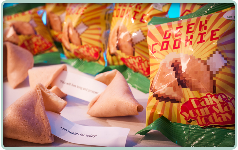 These fortune cookies featured a couple of hundred different geeky messages, such as "404 fortune not found", "Live long and prosper" or a rickroll url.