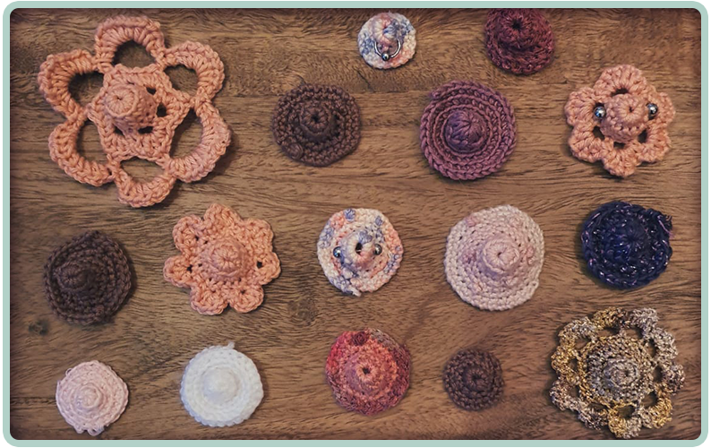 #goingflat #teamnonipples - some people don't have nipples, and that's fine. There are also still so many stigmata around female presenting nipples. To raise awareness, I started my nipple crocheting project.