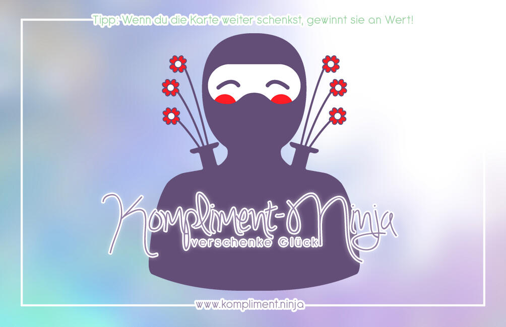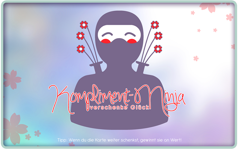 "Kompliment Ninja" (German for "Compliment Ninja") is a non-profit project to help people get together and learn expressing positive emotions without ulterior motives. Once the project is finished, you can order the small business-card-sizes compliments for free or print them yourself, and then it's your turn to be a Ninja! Slip the cards into the pockets of the people you admire or be brave and give them to them directly. The cards say things like "I really like your hair" or "You have a wonderful presence!".
