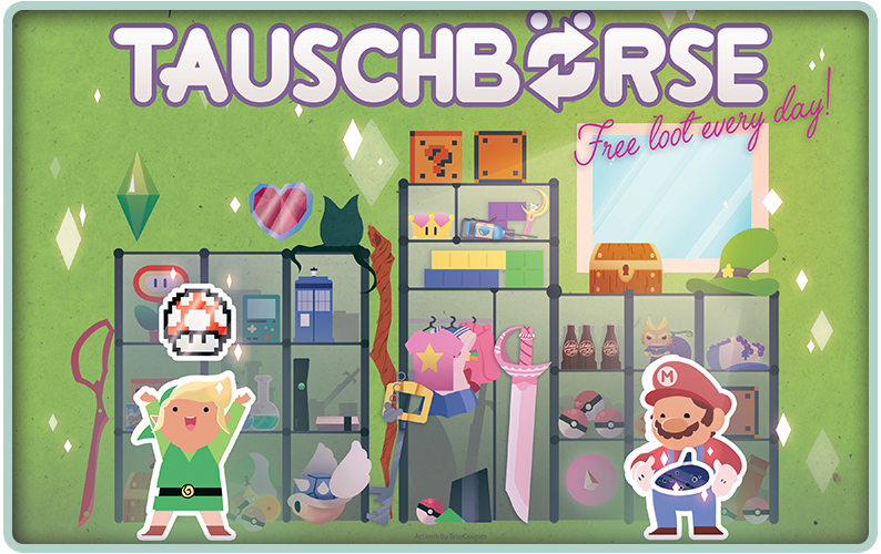 Part of the Item Shop, we had an own room just for exchanging old geek items, like videogames, comics & more. You put something in you didn't need anymore and take out something of alike value.